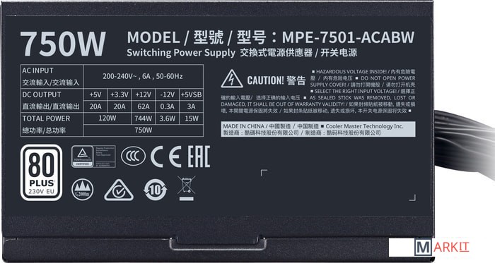 Markit » Блоки питания » Блок питания Cooler Master MWE 750 White 230V V2 MPE-7501-ACABW-EU