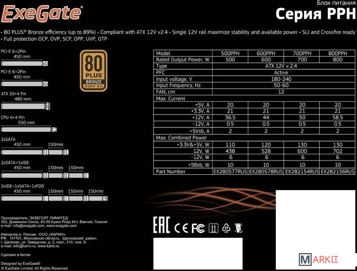 Markit » Блоки питания » Блок питания ExeGate 800PPH 80 Plus Bronze EX282156RUS