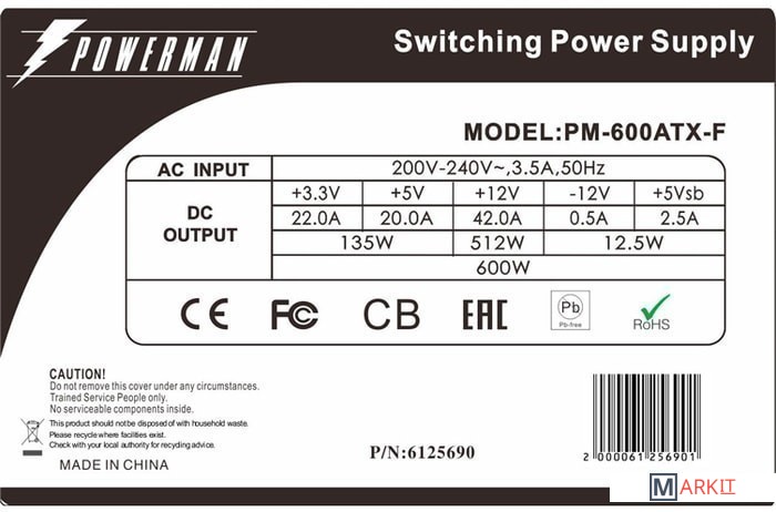 Markit » Блоки питания » Блок питания Powerman PM-600ATX-F