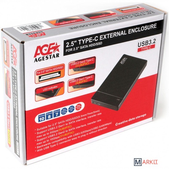 Markit » Боксы для накопителей » Бокс для накопителей 2.5" AgeStar 31UB2P3C (черный)