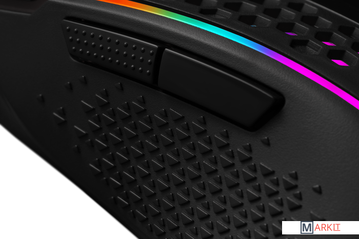 5 режимов DPI с индикаторомСпециальная кнопка в верхней части мыши позволяет переключать уровень DPI не выходя из игрыУдлиненные тефлоновые ножкиВысокоточный сенсорРегулируемая частота опросаПрограммное управление позволяет настроить скорость опроса мыши (125, 250, 500, 1000 Гц) для увеличения скорости отклика мыши на движения пользователя7 режимов динамической подсветкиПрограммируемая RGB подсветкаПрограммируемые кнопкиКнопка переключения профилей (5 режимов)Многофункциональное программное обеспечение