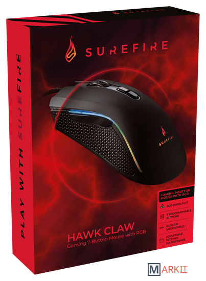 Благодаря высокочувствительному оптическому датчику, разрешению 6400 тчк/дюйм, 7 программируемым кнопкам и полноцветной светодиодной подсветке мышь SureFire Hawk Claw станет идеальным выбором для самого требовательного геймера