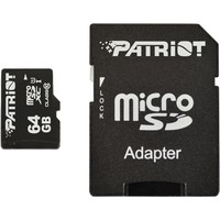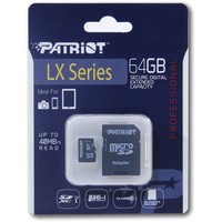 Карта памяти Patriot microSDXC LX Series (Class 10) 64GB + адаптер [PSF64GMCSDXC10] Код: 96263