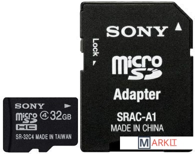 Markit » Карты памяти » Карта памяти Sony microSDHC (Class 4) 32GB + адаптер (SR32A4T)