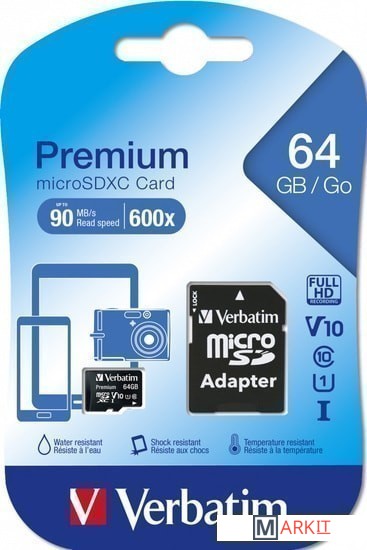 Markit » Карты памяти » Карта памяти Verbatim Premium 44084 64GB + адаптер