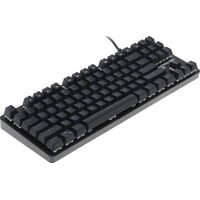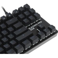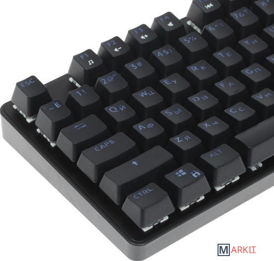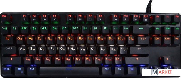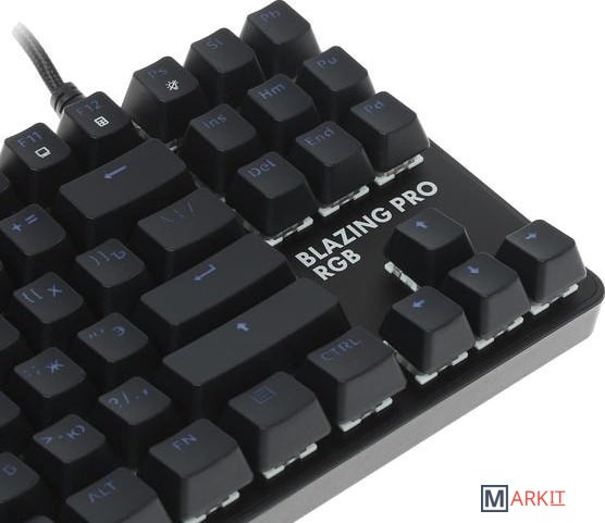 Клавиатура DEXP Blazing Pro RGB обладает габаритами 355x35x125 мм (ширина, высота и глубина соответственно), благодаря чему ее можно удобно разместить даже на небольшом рабочем столе. Вес, равный 665 г, обеспечен металлическим исполнением корпуса. Модель относится к проводному типу: для ее подключения к компьютеру используется кабель USB, длина которого соответствует 1.8 м. Благодаря тканевой оплетке шнур меньше спутывается и не перетирается о край стола. Компактный корпус устройства имеет матовое покрытие, благодаря которому на нем менее заметны отпечатки пальцев. В клавиатуре DEXP Blazing Pro RGB предусмотрена защита от брызг воды. Имеется клавиша функций (Fn), которая существенно расширяет возможности устройства. Механическая модель оснащена переключателями Outemu Blue, которые обеспечили ей долговечность и большой ресурс нажатий без "эффекта усталости". Всего в этой клавиатуре предусмотрено 87 клавиш, из которых 11 отвечают за мультимедиа-функции и установку макросов. Имеется разноцветная подсветка.