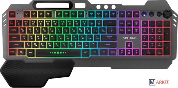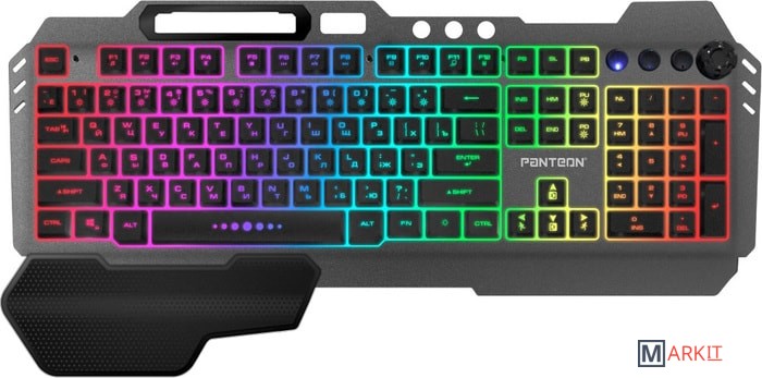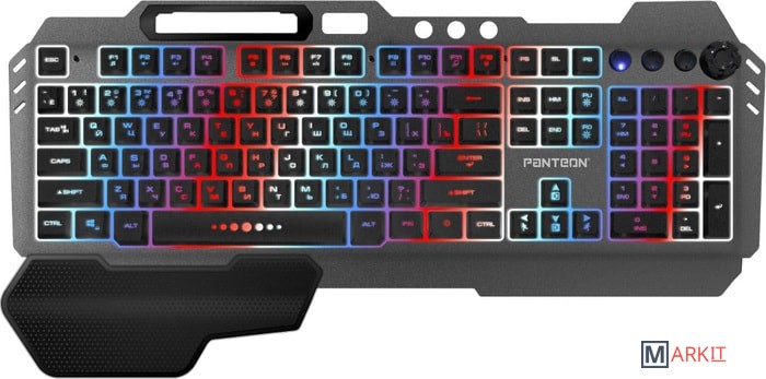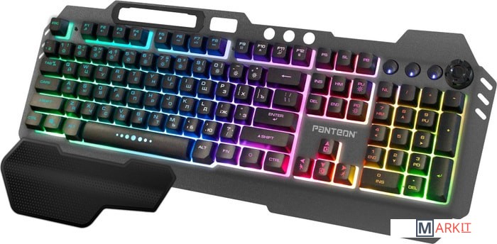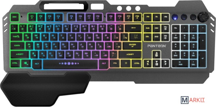 Зонированная LED-подсветка RGB-Light18 предустановленных статических и динамических режимов позволят каждому найти подходящий вариант. Выбор режимов осуществляется при помощи сочетания клавиш Fn+0...9 и нажатием на вращающийся регулятор громкости (для активации режима управления подсветкой необходимо нажать на регулятор и удерживать 3 секунды).Настраиваемый режим постоянного однотонного свеченияВ этом режиме можно выбрать один из 7 доступных цветов для всего поля подсветки целиком (доступные цвета: красный, белый, голубой, фиолетовый, желтый, синий, зеленый).Настраиваемый режим постоянного разноцветного свеченияВ этом режиме можно выбрать один из 7 доступных цветов для 10 секторов клавиатуры.При помощи сочетаний клавиш можно управлять яркостью подсветки и скоростью воспроизведения динамических эффектов.Надежный мембранный механизмДо 10 млн нажатий - ресурс клавиш, который гарантирует длительный срок службы устройства даже при ежедневном активном использовании. В работе мембранная структура обеспечивает мягкий и тихий клик.Регулируемый угол наклонаРаскладные ножки на дне клавиатуры позволяют менять угол наклона и располагать клавиатуру в комфортном положении, снижая нагрузку на кисти и запястья.Антигостинг 19 клавишМодель PANTEON M280 обладает функцией антигостинга на 19 клавиш: Q, A, Z, W, S, X, E, D, C, B, F, V, пробел, ↑, ↓, ←, →,Shift (левый), Tab. Это открывает широкие игровые возможности - нажатие на каждую клавишу анализируется платой отдельно, что позволяет при управлении игровыми действиями одновременно нажимать большое количество клавиш, не опасаясь за их некорректную регистрацию или искажение последовательности нажатия.Игровой режимFn+Win предотвращает случайное «сворачивание» окна во время активной игры.Fn+W активирует клавиши управления курсором (стрелки) в режим WASD.Усиленный каркасКорпус рассчитан на ударные нагрузки, которые свойственны процессу активной игры. Усиленное основание и антискользящие резиновые ножки обеспечивают стабильное положение даже во время активных и резких движений во время игрового сражения.