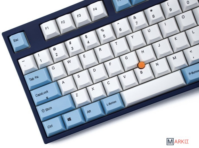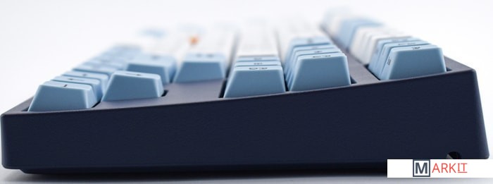 Тип: тактильныйСила нажатия: 65 грамм (тяжелые)Длина пути: 4 мм (2 мм до срабатывания)Данная модель представлена в тёмно-синем окрасе с белыми и светло-голубыми клавишами, расцветка выглядит свежо и воздушно. Клавиатура собрана добротно и монолитно, а сочетание высококачественных PBT клавиш с переключателями Cherry MX и звукопоглощающей подложки позволяет сделать печать на клавиатуре максимально тихой (насколько это возможно для механики). Mini-USB порт спрятан в центре под корпусом, а на самой клавиатуре имеются центральная и две боковые канавки под кабель.Уникальная для клавиатур Leopold фишка: теперь, если у вас нет под рукой мыши, клавиатура сможет взять её обязанности на себя. Указательный стик позволяет перемещать курсор, а для левой и правой кнопок мыши с обеих сторон пробела расположились специальные клавиши.Клавиатура поддерживает сочетание клавиш для регулировки громкости и управления музыкой, также имеется возможность переключения между 6KRO и NKRO.DIP-переключатели на задней панелиДают возможность поменять местами функции кнопок Ctrl и Caps Lock, Windows и Alt, Windows и Fn или отключить Windows.Звукопоглощающая подложкаПоглощает звуки при нажатии, делая процесс печати более тихим по сравнению с обычными механическими клавиатурами.Низкопрофильные клавиши Step-Sculpture2Данные клавиши заметно ниже и имеют оптимальный угол наклона, из-за чего, по отзывам, печатать приятнее и комфортнее, чем на более высоких клавишах.Клавиатура совместима с Mac OSFN-слой работает (кроме клавиш F6, F8, F9), а поменять местами клавиши-модификаторы можно в системных настройках. Проверено с MAC OS 10.13Функция Full N-key Rollover по USB (NKRO)Позволяет нажимать одновременно неограниченное количество клавиш. Для печати идеально подойдет как 6KRO, так и NKRO, независимо от вашей скорости. Для игр NKRO будет плюсом и неважно, нажимаете ли вы больше 6 кнопок или нет, поскольку, играя в любую игру, вы можете случайно нажать пару лишних клавиш и из-за этого клавиатура имеет шанс не среагировать на нажатие, которое вы хотели совершить изначально. Имеется возможность переключения между NKRO и 6KRO через FN сочетания.