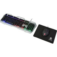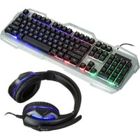 клавиатура + мышь с ковриком + наушники |