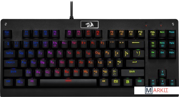 Программируемая RGB подсветкаПозолоченный USB-коннекторАппаратная блокировка клавиши WIN во время игрыЗвонкий звук / щелчок переключателейВлагоустойчивая конструкция клавиатурыКомбинации клавиш "Fn+F5" и "Fn+F6" позволяют выбрать оптимальный уровень яркости подсветки (100, 75, 50, 25%)Технология Double injectionСимволы не сотрутся, так как клавиши отлиты из двух цветов пластика: черный для области кнопки и белый/прозрачный для символов