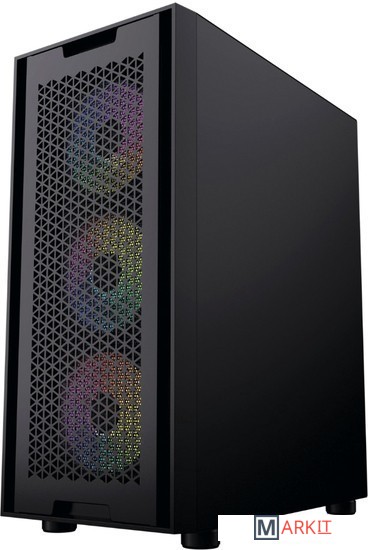 Конфигурация вентиляторов Спереди: 3 x 120мм LED Fan (Предустановлено); Сзади: 1 x 120мм Fan (Предустановлен); Сверху: 2 x 120/140мм (Опционально)