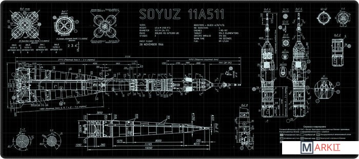 Тип покрытия коврика — speed, и он обладает достаточной гладкостью для быстрого скольжения мыши, но стоит учитывать, что это не геймерский коврик, поэтому идеального скольжения вы не добьётесь. Однако мягкий и приятный на ощупь материал даёт великолепную точность. Используйте наш коврик в паре с мышками на глайдах из белого PTFE, чтобы добиться максимально быстрого и гладкого скольжения, приближенного к игровому.Чертеж ракеты союз перенесен на поверхность ковра с сохранением изначального качества, поэтому сохраняет свою аутентичность и смотрится немножко более рок-н-рольно. Даже кляксы на чертеже — оригинальные!И кстати, коврики идут в красивом картонном тубусе, что также делает их отличным подарком.