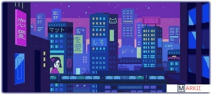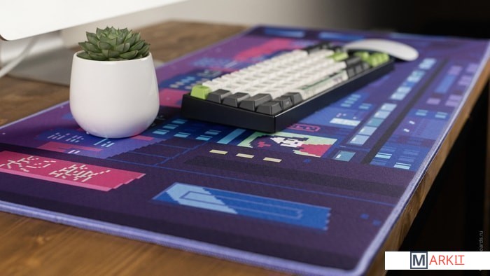 Тёмные пурпурно-фиолетовые тона с вкраплениями неоновых огней восьмибитного ночного Токио не оставят равнодушным никого.Тип покрытия нашего коврика — speed, и он обладает достаточной гладкостью для быстрого скольжения мыши, но стоит учитывать, что это не геймерский коврик, поэтому идеального скольжения вы не добьётесь. Однако мягкий и приятный на ощупь материал даёт великолепную точность. Используйте наш коврик в паре с мышками на глайдах из белого PTFE, чтобы добиться максимально быстрого и гладкого скольжения, приближенного к игровому.И кстати, коврики идут в красивом картонном тубусе, что также делает их отличным подарком.