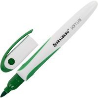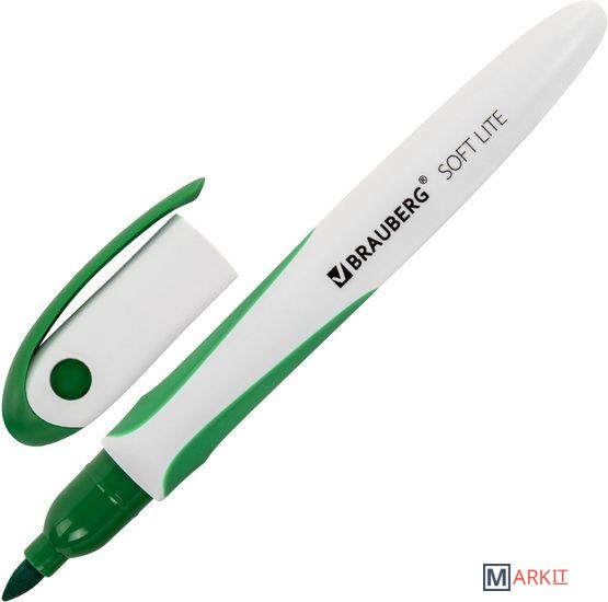 Высококачественный маркер BRAUBERG «SOFT LITE» для белой доски. Предназначен для письма на досках с магнитно-маркерной поверхностью.Маркер для доски зеленого цвета обладает круглым пластиковым корпусом диаметром 13 мм. Корпус оснащен резиновыми вставками для более удобного использования. Наконечник круглой формы обеспечивает толщину линии письма 3 мм, что позволяет писать крупным шрифтом, который будет хорошо виден. Благодаря спиртовой основе, чернила быстро высыхают и не оставляют разводов, легко стираются сухой губкой. Изделие не перезаправляется. Цвет клипа и резиновых вставок соответствует цвету чернил.