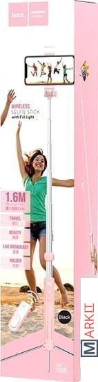 Главной особенностью данного устройства является наличие подсветки для фото. Также оснащена встроенным складным триподом, который размещается в основании корпуса устройства.В комплект поставки входит специальный Bluetooth пульт и кабель для зарядки microUSB.