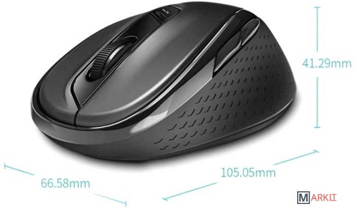 Беспроводная бесшумная мышь с настраиваемым DPI (600/1000/1300/1600), переключаемым радиоканалом (между Bluetooth 3,0, 4,0 и 2,4G). Работает на любом типе поверхности.