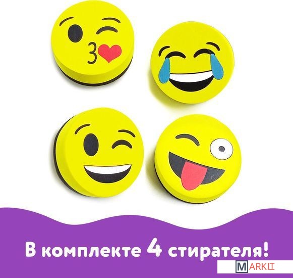 Markit » Аксессуары для офисных досок » Набор губок для стирания Юнландия Смайлик 237504 (4 шт)