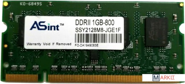 Markit » Оперативная память » Оперативная память ASint 1GB DDR2 SODIMM PC2-6400 SSY2128M8-JGE1F