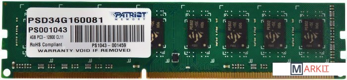 Markit » Оперативная память » Оперативная память Patriot Signature 4GB DDR3 PC3-12800 (PSD34G160081)