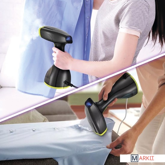 Ручной отпариватель Kitfort КТ-9121 обладает такими достоинствами, как мощный поток горячего пара, компактность и лёгкий вес. Он быстро прогладит и продезинфицирует вещи практически в любом месте без раскладывания гладильной доски.Поверхность утюжка подогревается до 100-120°С и имеет металлическое покрытие, поэтому прибор можно использовать в режиме сухой глажки. Он оснащён помпой, что позволяет точно дозировать количество подаваемой в бойлер воды и получать устойчивую подачу пара.Для подачи пара необходимо нажать на нижнюю часть кнопки и удерживать её. Чтобы зафиксировать кнопку в нажатом состоянии, нужно сдвинуть фиксатор – устройство будет непрерывно подавать пар. Подсветка индикатора указывает на текущий процесс нагрева.Шерсть домашних животных прилипает к одежде из-за статического электричества, и её довольно проблематично очистить. Пар снимает у шерсти электрический заряд, и она легко счищается ворсовой насадкой.Резервуар для воды ёмкостью 300 мл съёмный и с широким отверстием, поэтому он легко наполняется водой и устанавливается в корпус прибора. Отверстие защищено прорезиненной крышкой, чтобы вода не вытекла при работе отпаривателя.