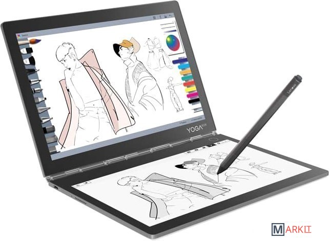 Планшет Lenovo Yoga Book C930 2-в-1 оснащен двумя дисплеями: сенсорным IPS с разрешением 2560x1600 и сенсорным E-Ink с разрешением 1920x1080. Дополнительный экран с «электронными чернилами» может трансформироваться в клавиатуру, блокнот или классическую электронную книгу. На планшете Yoga Book C930 можно делать заметки и рисовать с помощью Bluetooth-стилуса, поддерживающего до 4096 вариантов нажима. Благодаря длительному времени работы планшет Yoga Book C930 можно использовать максимально эффективно. В обычном режиме планшет проработает около 9 часов. Планшет Yoga Book C930 оснащен поворотными на 360 градусов петлями и предоставляет несколько вариантов работы. Пользователь может выбрать удобное положение дисплея в зависимости от решаемой задачи: ввода текста, редактирования документов, чтения, веб-серфинга и просмотра фильмов.