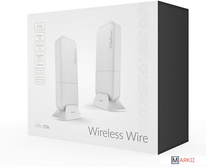 Комплект беспроводного гигабитного моста состоящего из двух точек доступа. Беспроводной мост может обеспечить высокоскоростное соединения на расстоянии до 100 метров. Рабочий диапазон частот RBwAPG-60ad 60ГГц, что позволяет работать стабильно даже в зашумленной городской среде.Точка доступа имеет четырехядерный процессор Qualcomm IPQ-4019, оперативную память в 256Мбайт и 16Мбайт флэш памяти.Точки доступа выполнены во всепогодном корпусе с возможностью настенного крепления. Кроме возможности настенного крепления в комплекте есть специальная подствка, которая позволит установить устросйтво на горизонтальную поверхность. В качестве источника питания используется специальный PoE инжектор который поставляется в комплекте с точкой доступа.