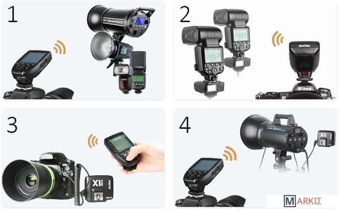 Радиосинхронизатор Godox Xpro-C TTL с функцией ДУ может не только управлять вспышками со встроенной системой беспроводной синхронизации Godox X (накамерными вспышками, аккумуляторными вспышками и студийными вспышками), но также управлять оригинальными вспышками в сочетании с приемником X1R-C.