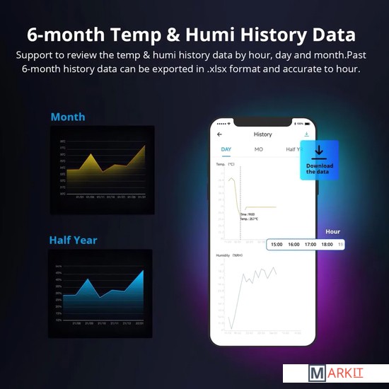 Sonoff TH Origin THR316 - это умное Wi-Fi реле, с функцией мониторинга температуры и влажности (датчики приобретаются отдельно), которое позволяет удаленно контролировать и устанавливать температуру и влажность, для включения/выключения электроприборов. Модель является обновлением версий Sonoff TH10/16.Напряжение питания 100-240 В, 50/60 ГцКоммутируемый ток 16 АКоммутируемая мощность 3 520 Вт (резистивная нагрузка)Поддерживаемый тип датчика DS18B20, AM2301, Si7021, THS01 до 60 м.Разъем подключения датчика RJ-9 (телефонный разъем 4P)Частота Wi-Fi 2.4GHz (IEEE 802.11 b/g/n)Рабочая температура -10 °C- 40 °CВлажность 5% -95%Материал корпуса PC V0 (трудно горючий пластик)Размер 98x54x31 мм