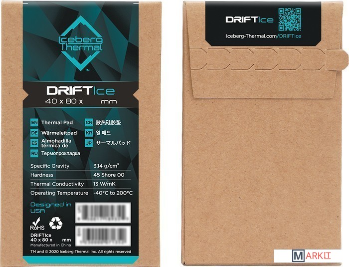 Markit » Системы охлаждения » Термопрокладка Iceberg Thermal DRIFTIce 80x40x1 мм DRIFTICE10-A0A