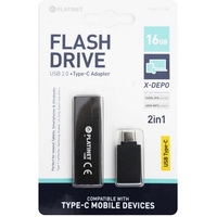 USB Flash Platinet X-Depo + Type-C Adapter 16GB (черный) Код: 99329