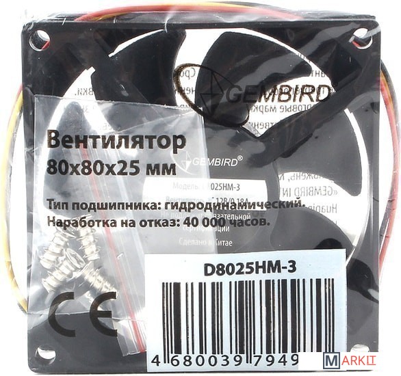 Markit » Системы охлаждения » Вентилятор для корпуса Gembird D8025HM-3